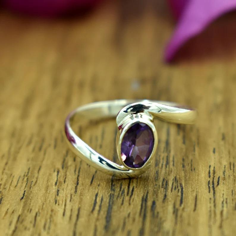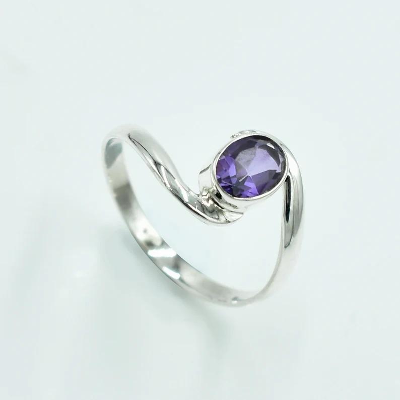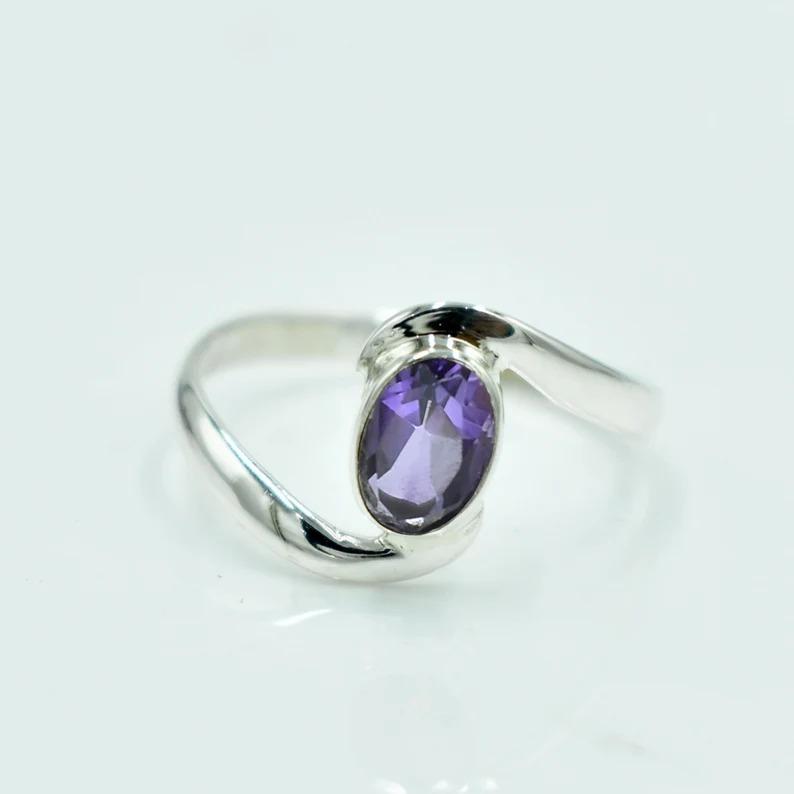 Аметист Драгоценный камень Кольцо из цельного стерлингового серебра 925 пробы, Дизайнерское кольцо ручной работы, Кольцо с камнем месяца рождения, Подарок для нее