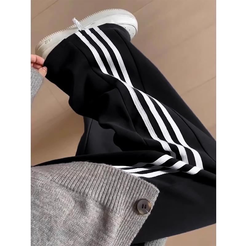 Черные спортивные штаны женские весенне-осенние новые маленькие прямые леггинсы спортивные штаны свободные ленивые в полоску широкие брюки