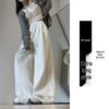 Белые брюки с высокой посадкой и широкими штанинами: Весна/Осень 2025 - Утягивающие, Свободные, Трикотажные брюки в пол для женщин — купить товар онлайн с бесплатной доставкой по всему миру!