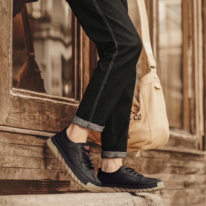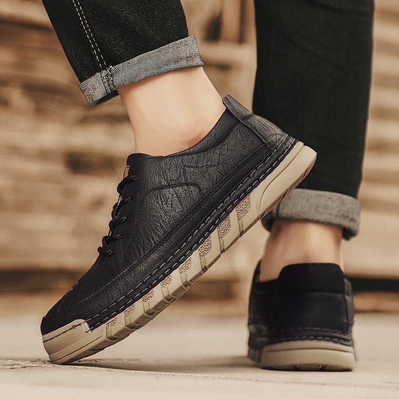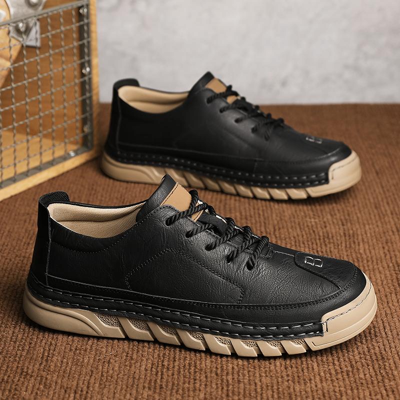 Мужская кожаная повседневная обувь Мягкая подошва Обувь для ходьбы Роскошный бренд На шнуровке Легкая обувь для ходьбы Уличные мужские кроссовки
