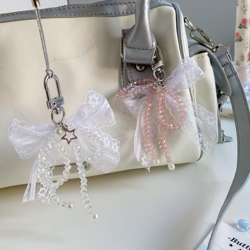 Брелок с кружевным бантом в стиле Y2K, подвеска для сумки с бантом, изящное украшение для рюкзака, подарок.