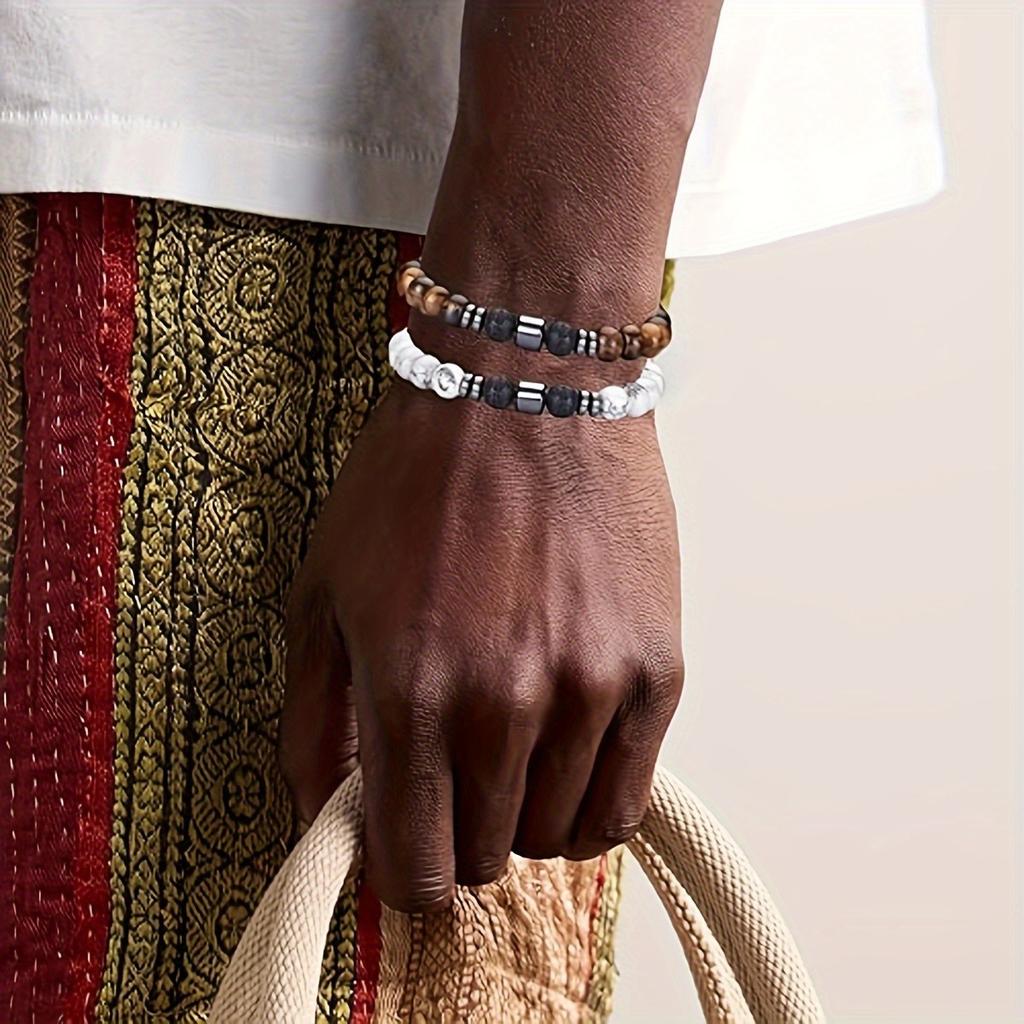 Набор из 4 браслетов из натурального камня с бусинами для пар, для мужчин и женщин, для расстояния, черный, белый, из натурального камня лавы, с бусинами из тигрового глаза, браслет-оберег