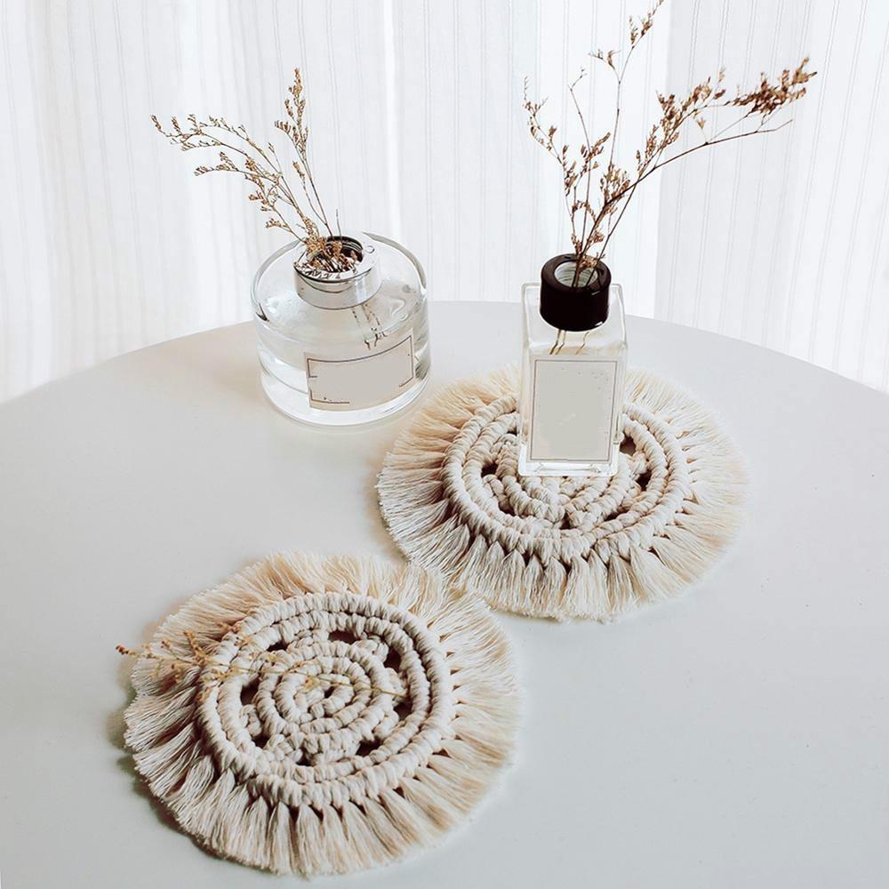 Подставки под стаканы из макраме, плетеные вручную, хлопковая веревка, плетеные салфетки, подставка под чашку, декор стола, термостойкий коврик для чашки