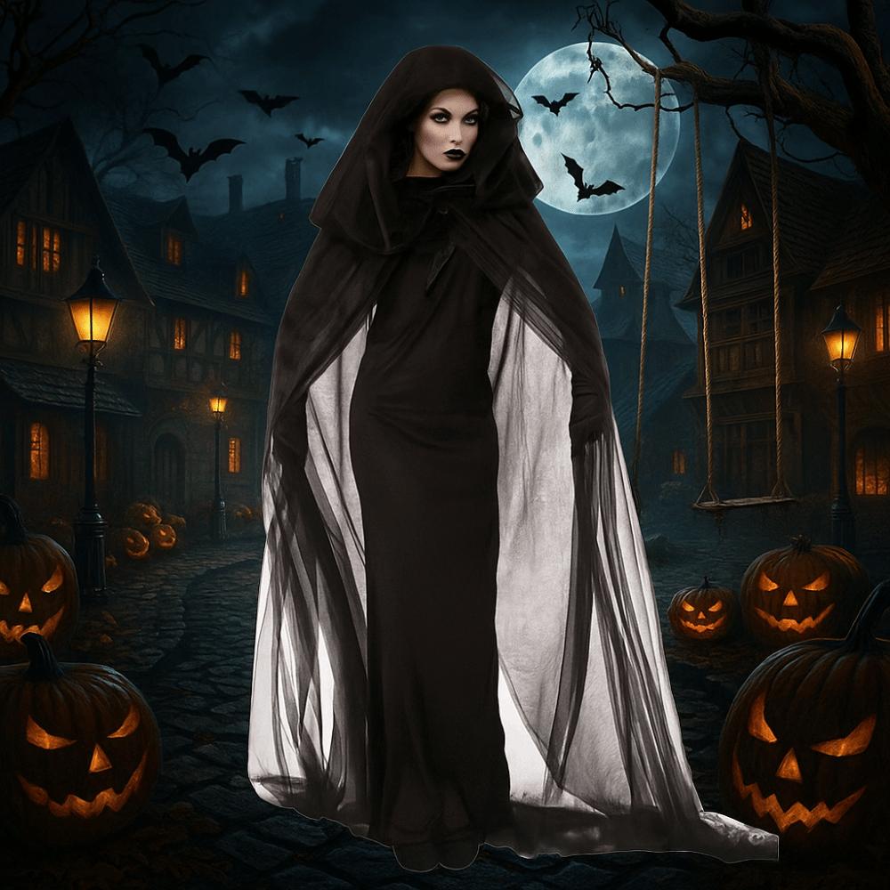 Женский костюм на Хэллоуин на шнуровке, нарядный плащ с капюшоном, забавный сетчатый плащ привидения, косплей
