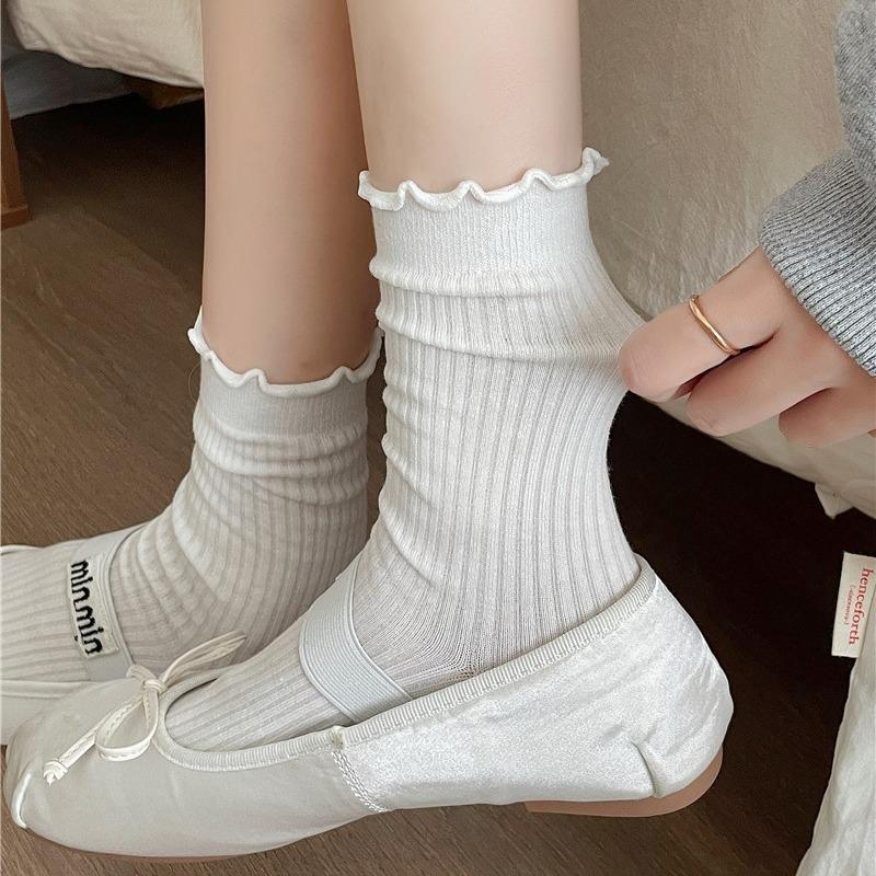 Женские ребристые белые и серые носки с кружевной отделкой - модный стиль Miu