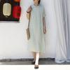 Johnature Vintage Stand Short Sleeve Dress For Women Solid Color Summer A-Line Chinese Style Female Dress — купить товар онлайн с бесплатной доставкой по всему миру!