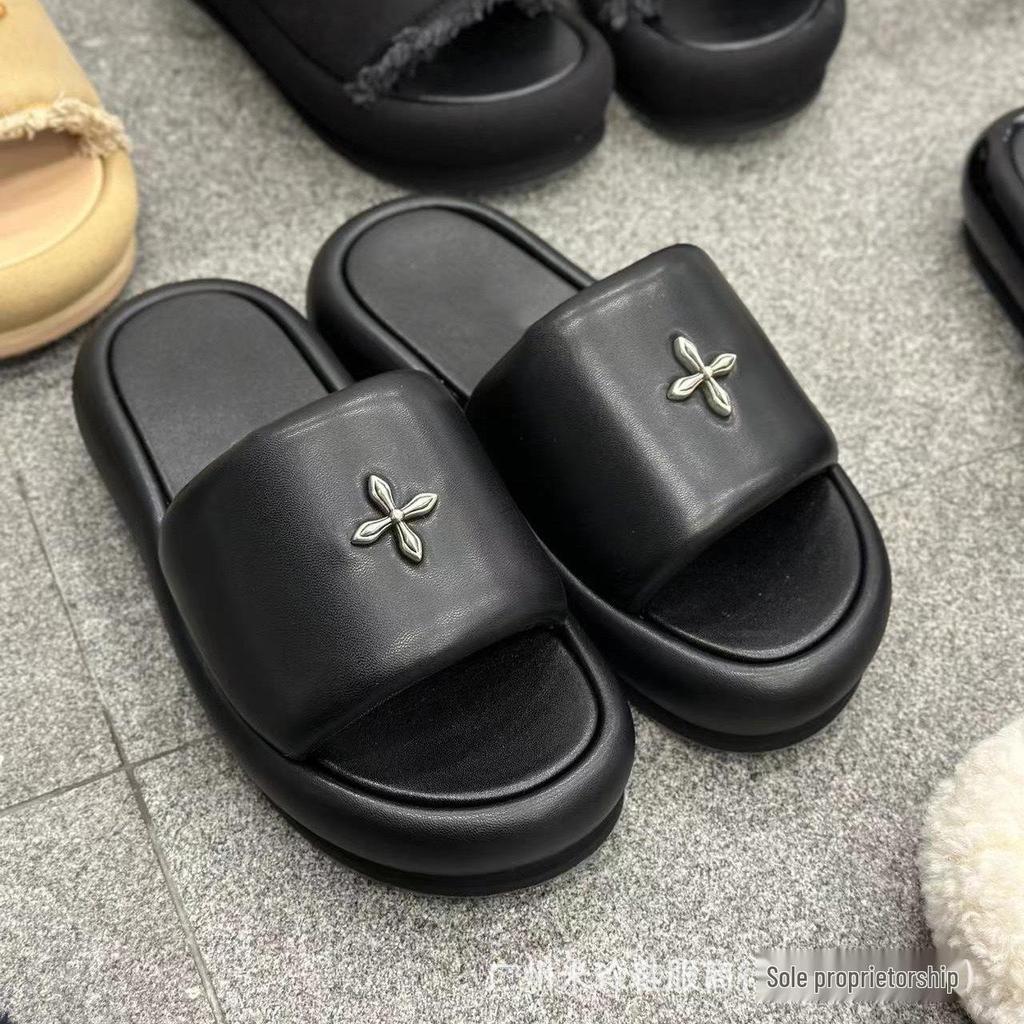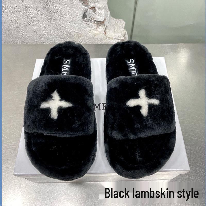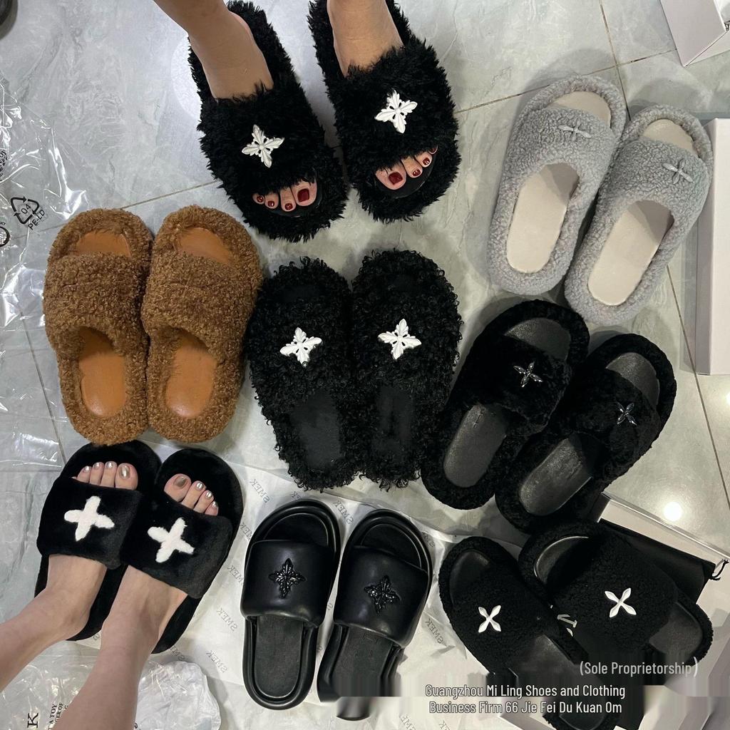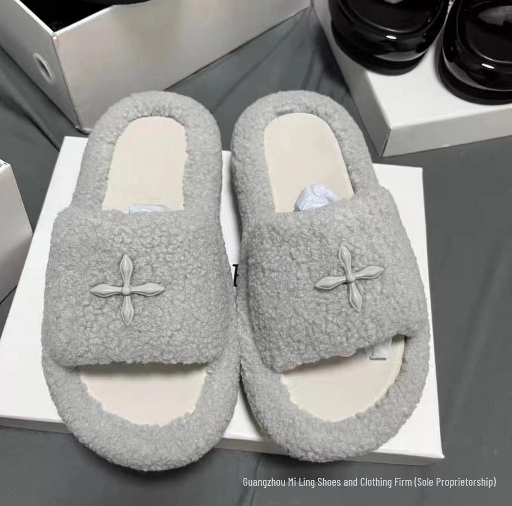 Почувствуйте непревзойденный комфорт и стиль с этими роскошными тапочками, оснащенными толстой резиновой подошвой для долговечности и восхитительной подкладкой из овчины, которая дарит ощущение плюша. Элегантный дизайн креста из кожи и бархата выполнен в классических черном и сером цветах, идеально подходит для добавления нотки изысканности к вашей летней домашней одежде.. Эти тапочки обеспечивают идеальное сочетание функциональности и высокой моды, что делает их незаменимой вещью для любого взыскательного гардероба.