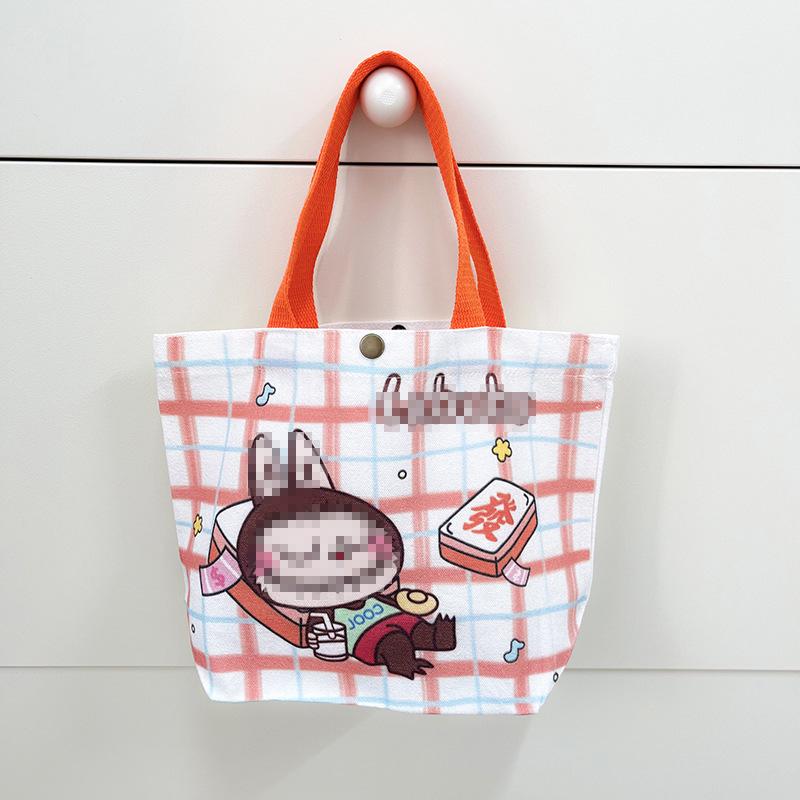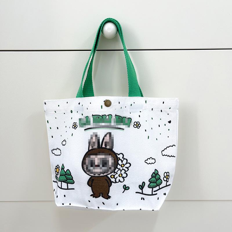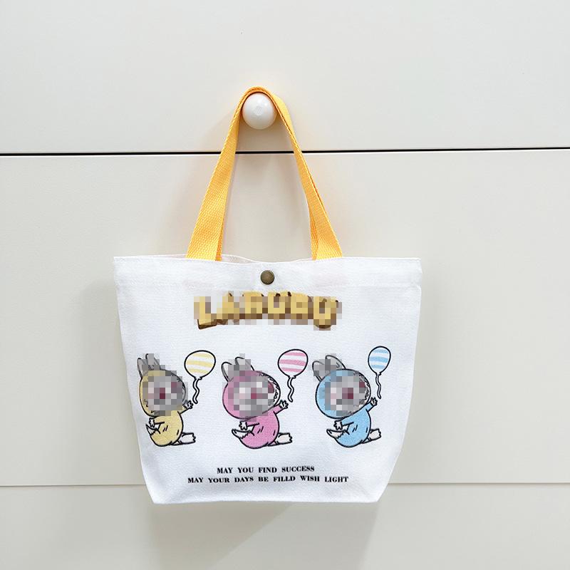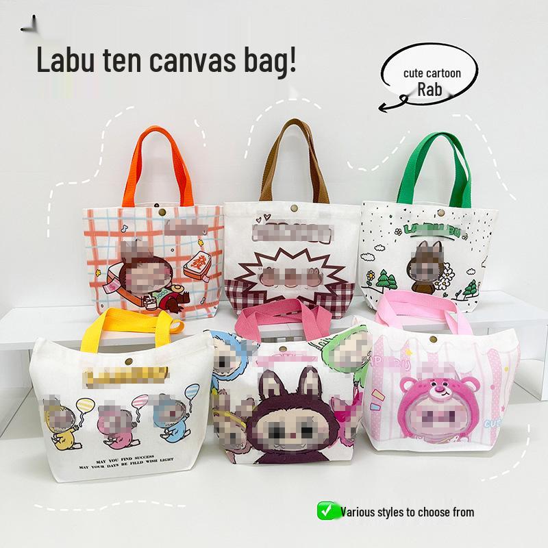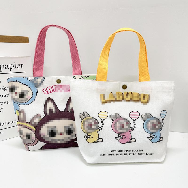 2025 Милая мультяшная холщовая сумка-тоут Labubu - Большая вместимость, на одно плечо, портативная для студентов и женщин