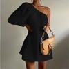 Экспорт Одно L Дома U Плечо Диагональный Воротник Рукава-буфы Гладкая Ткань Короткий Короткий Футляр Красивое Повседневное Платье