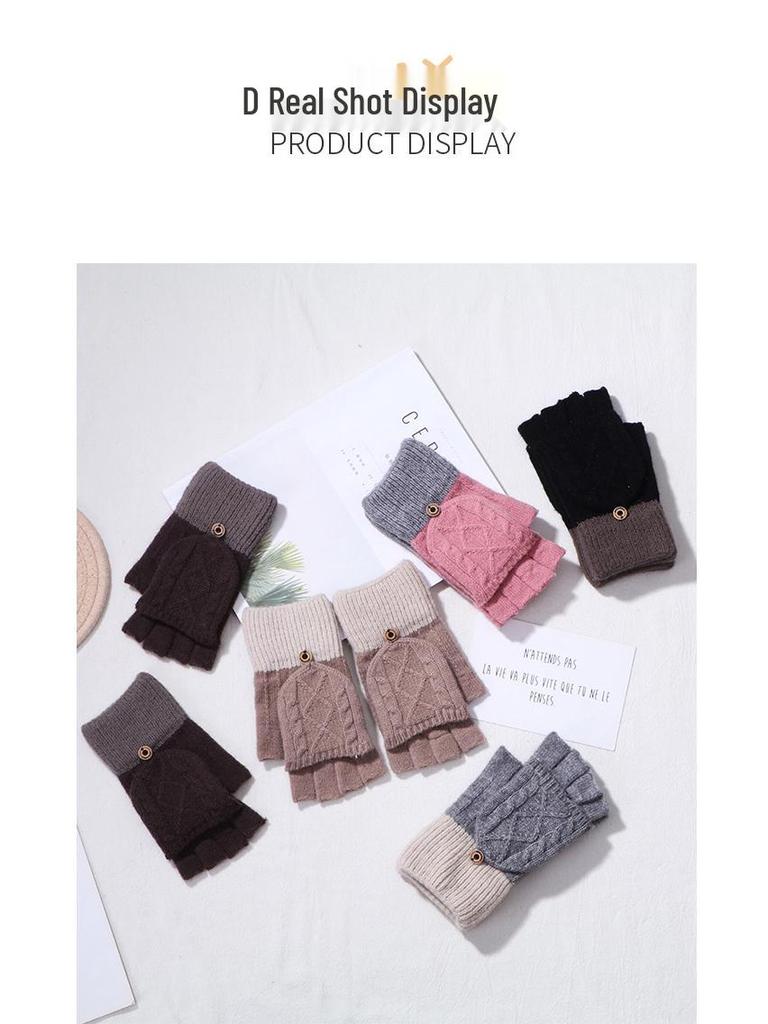 Осень 2024 Новые Кашемировые Митенки с Откидным Верхом, Жаккардовые Вязаные Перчатки для Студентов и Пар