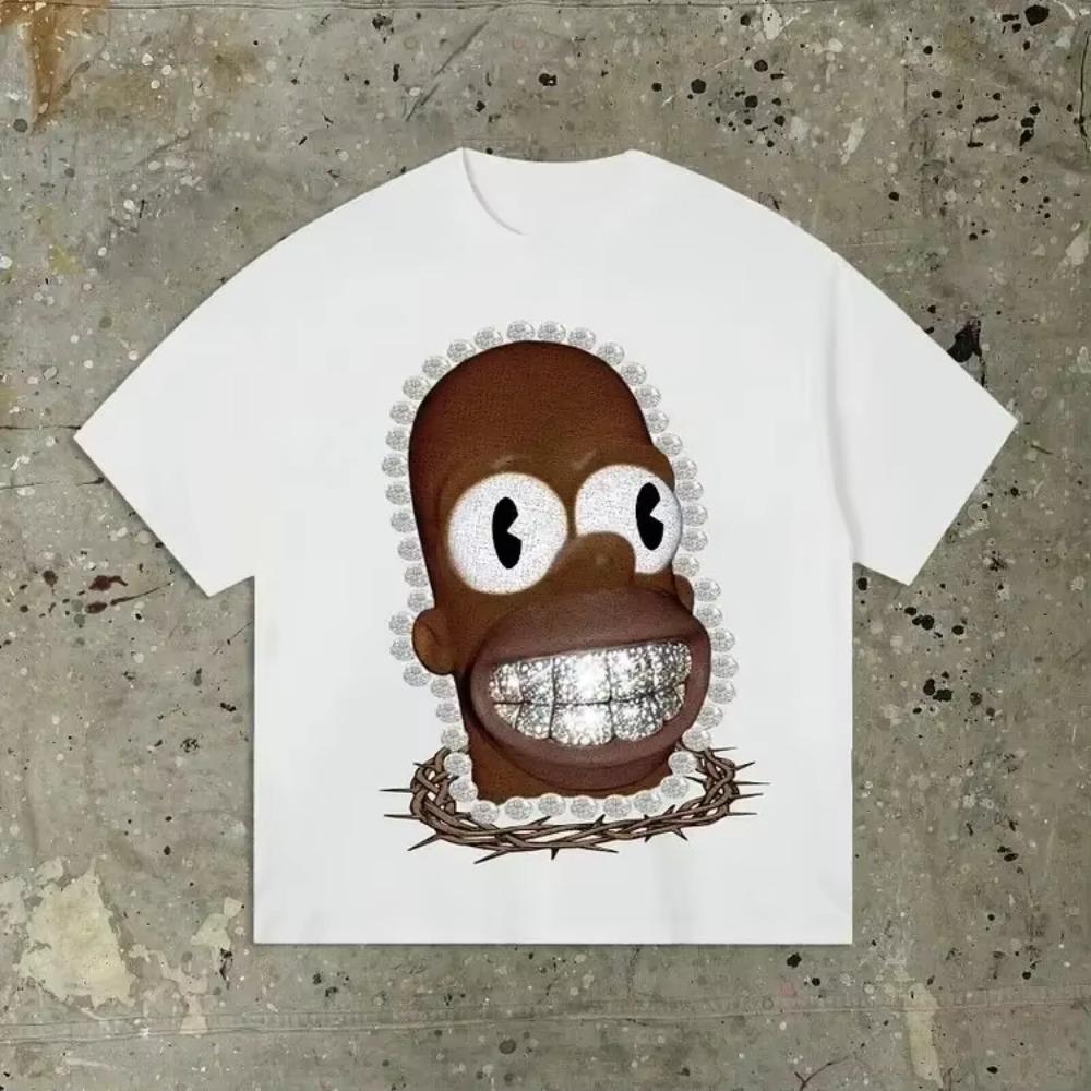 Уличная одежда Y2K Одежда Футболка Мужская с принтом Хип-хоп мультяшный принт Футболка Готическая 100% хлопок дышащая с коротким рукавом
