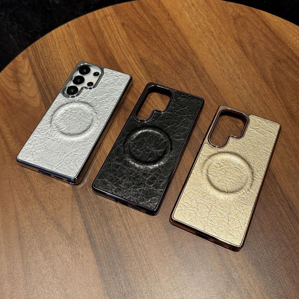 Samsung S25edge Mobile Phone Case S25u Protective Case Electroplating Exploded Leather Pattern Magnetic S24fe New Model