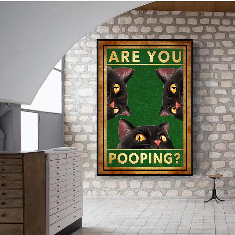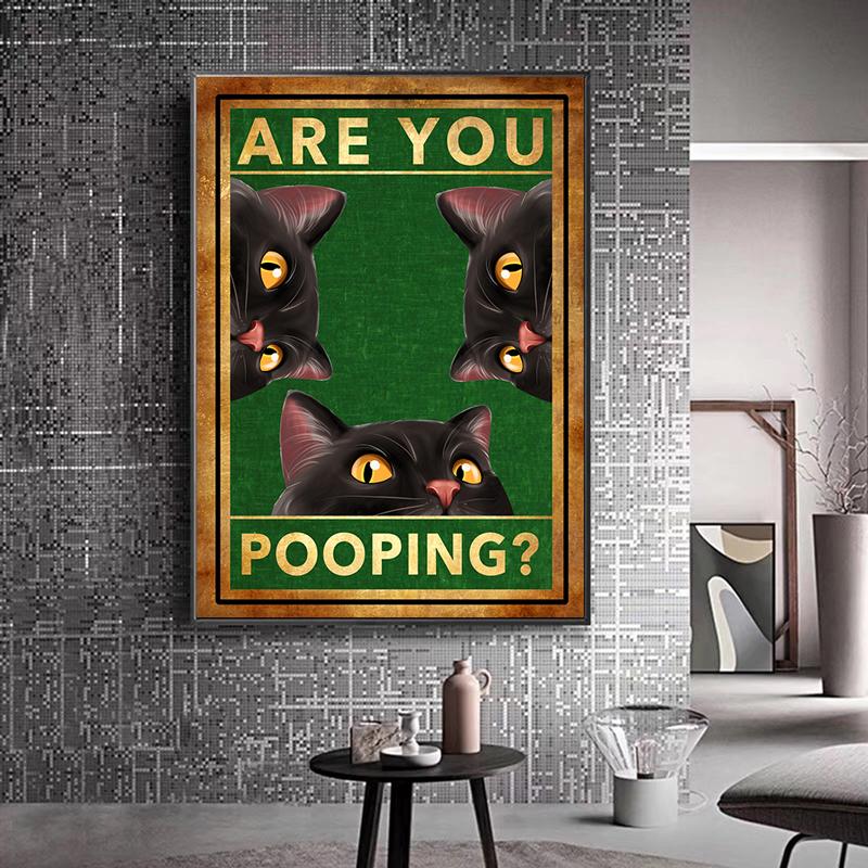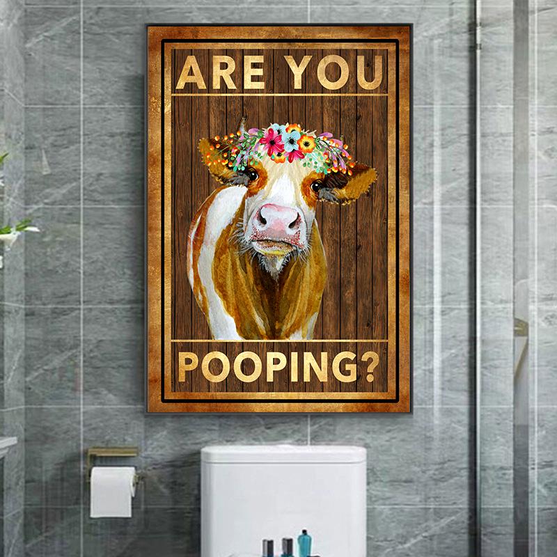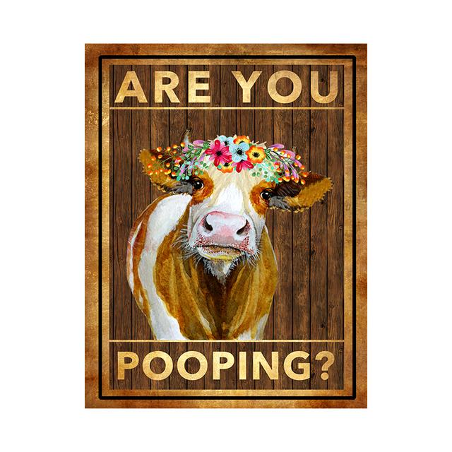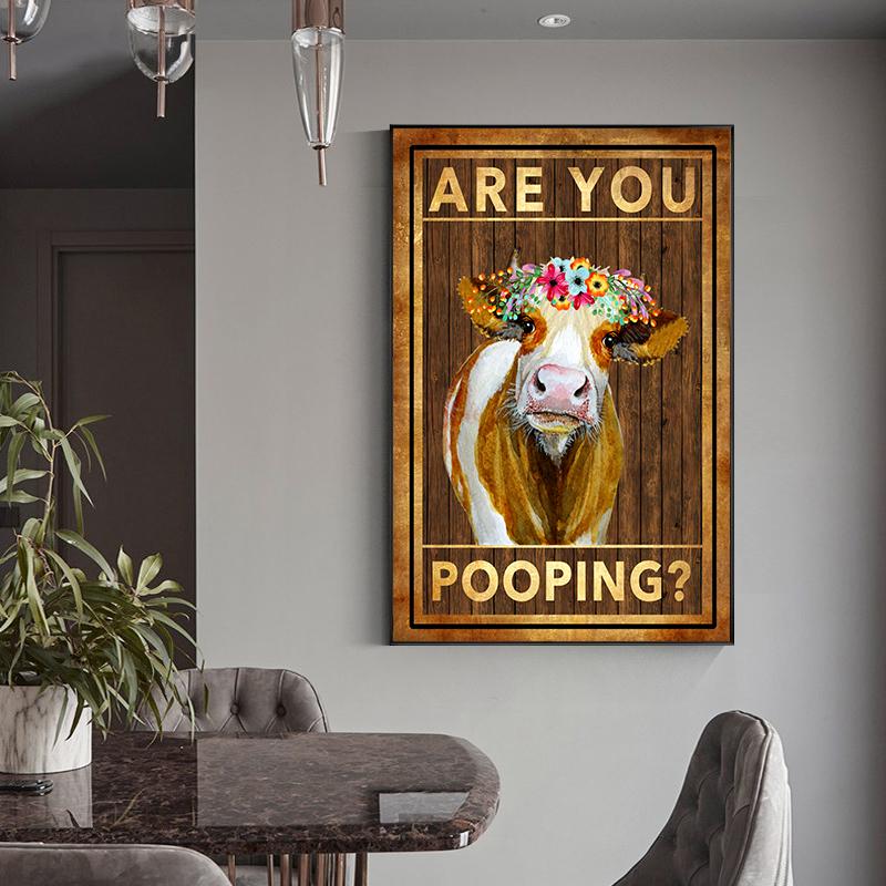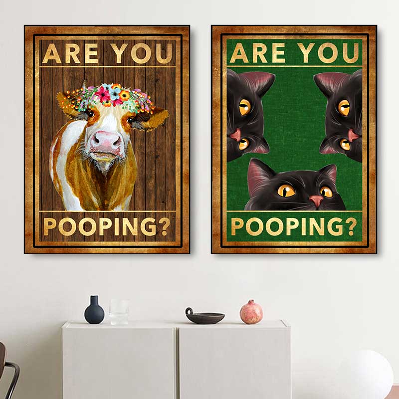 Fun Art Are You Pooping Poster Bathroom Funny Bathroom Sign Canvas Prints Cute Cat Cow Quote Art for Painting Wall Toilet Decor No Frame