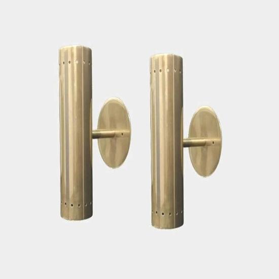 Эти латунные настенные бра тщательно изготовлены вручную, чтобы воспроизвести классический итальянский стиль освещения, популярный в середине 20-го века.. Дизайн цилиндрической трубки прекрасно рассеивает свет, создавая мягкую, располагающую атмосферу, которая хорошо смотрится как в современных, так и в традиционных интерьерах.