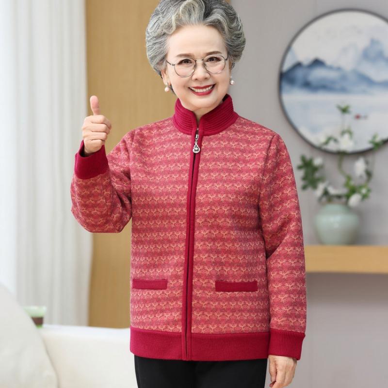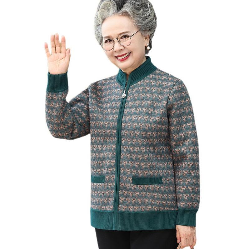 Бабушкина осенне-зимняя одежда, трикотажные свитера для женщин среднего и пожилого возраста, одежда для пожилых, флисовое утолщенное пальто для мамы, теплый свитер для жены
