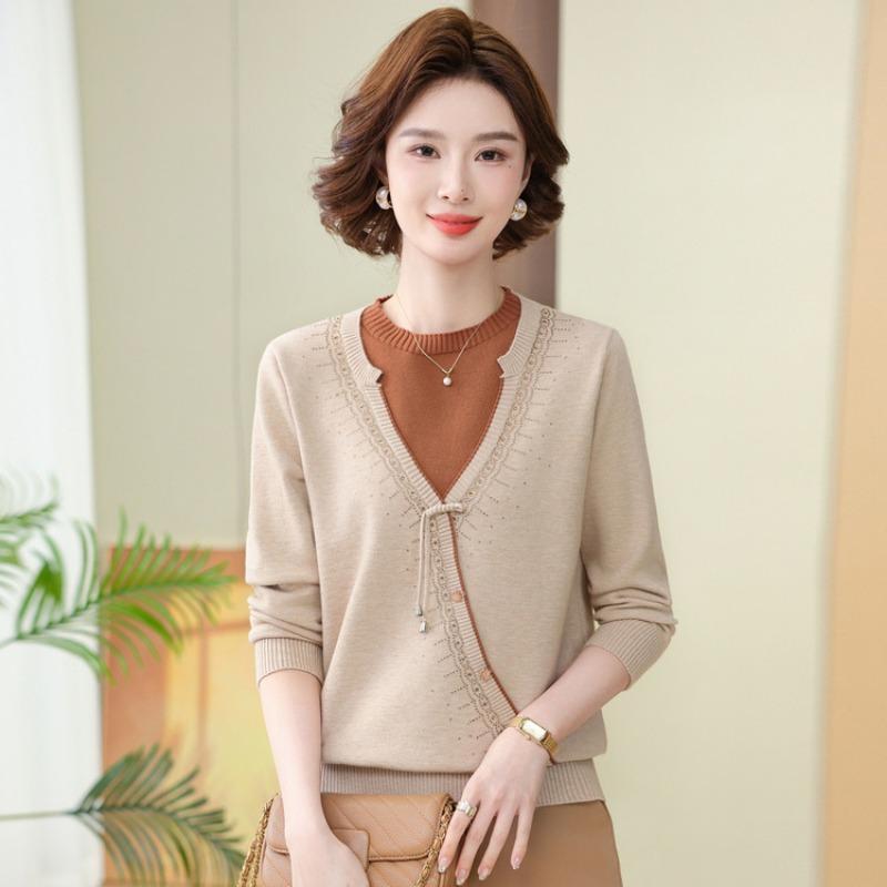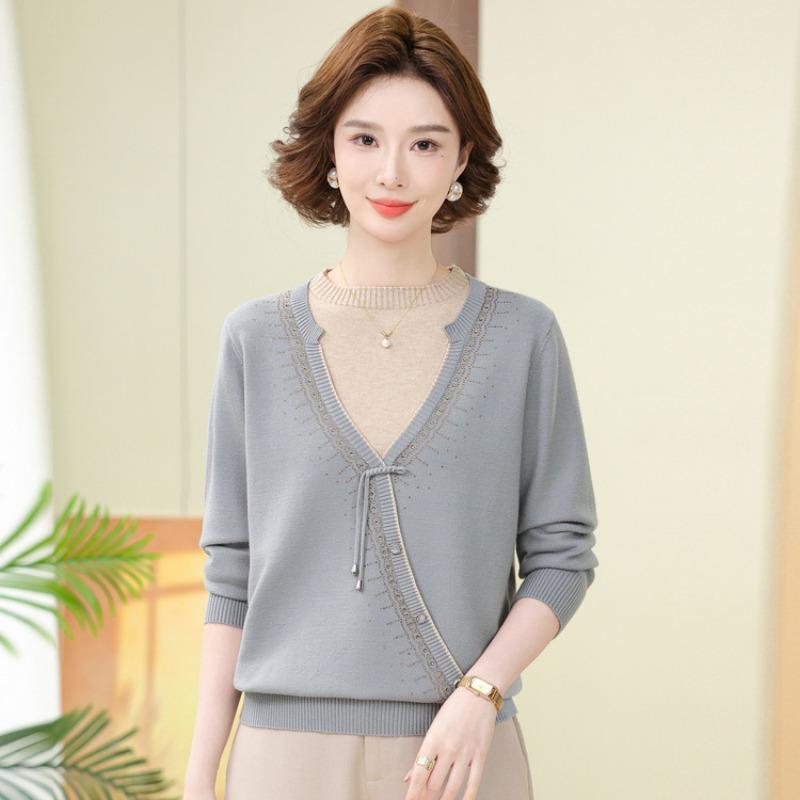 Новая весенняя одежда для мамы, вязаный топ-двойка, средняя женская одежда, весенне-осенний костюм-двойка, ежегодный свитер