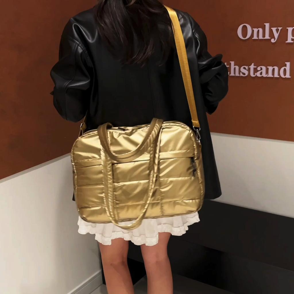 Yogodlns Стеганая однотонная мягкая дорожная сумка, портативная стильная вместительная женская сумка для спорта, работы и повседневного использования
