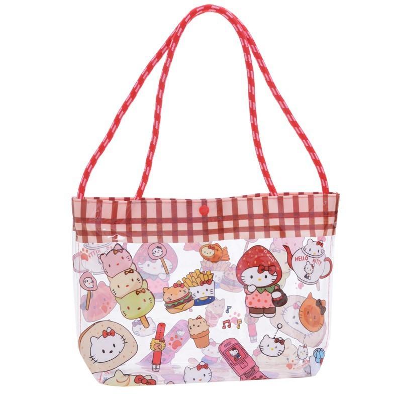 Эта модная пляжная сумка имеет водонепроницаемую ПВХ конструкцию с мультяшными рисунками Hello Kitty, что делает ее идеальной для прогулок по побережью и повседневных занятий.. Приблизительно 33*21*8 см, он легкий и имеет усиленную прострочку для долговечности. Подходит для детей дошкольного возраста, поддерживает повседневное использование на пляже или в парке. Для ухода протирайте влажной тканью.