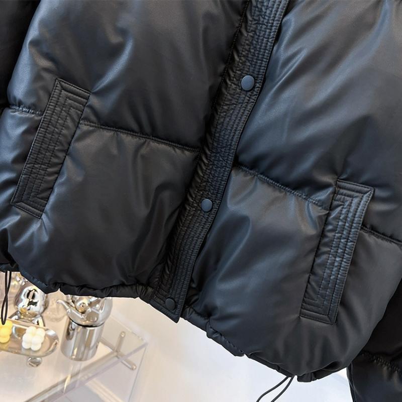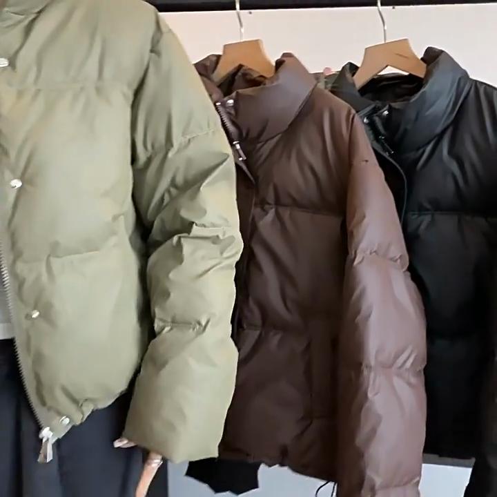 Женский пуховик короткой длины со стойкой, простой и свободного кроя, для зимы.