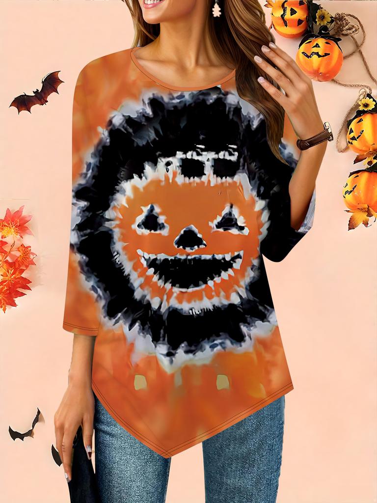 Женская свободная футболка с круглым вырезом и рукавом три четверти, 3D-рисунок на Хэллоуин, идеальный подарок на Хэллоуин и Рождество