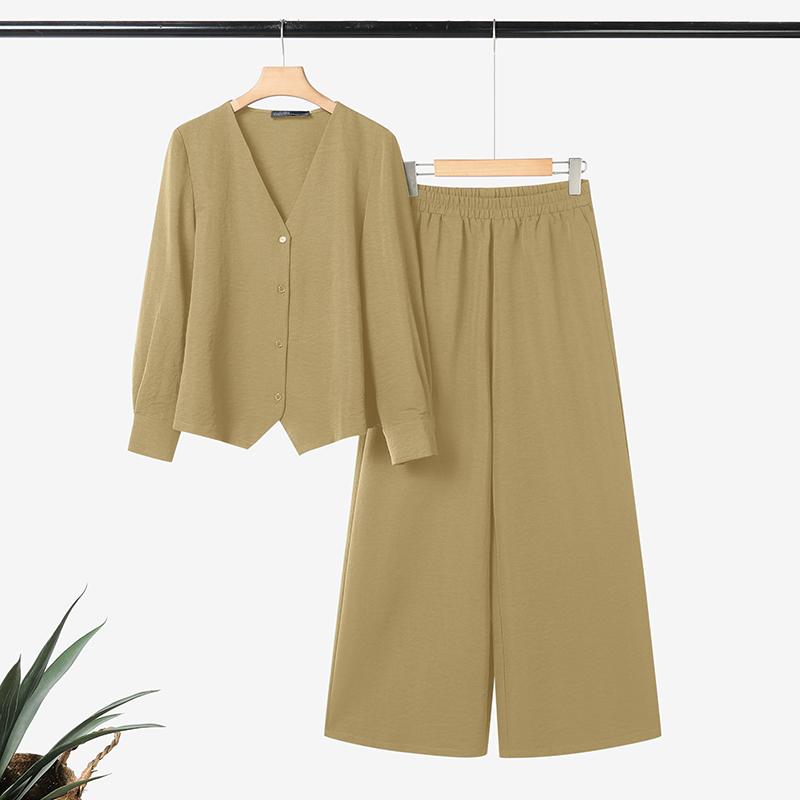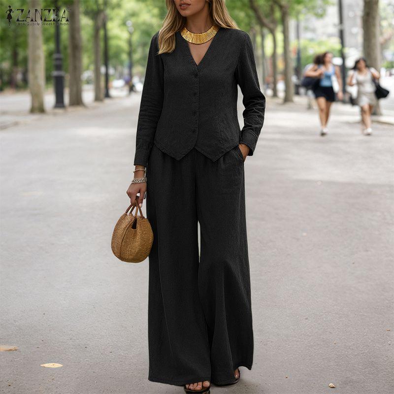 ZANZEA Женский повседневный костюм из двух частей с длинным рукавом и брюками