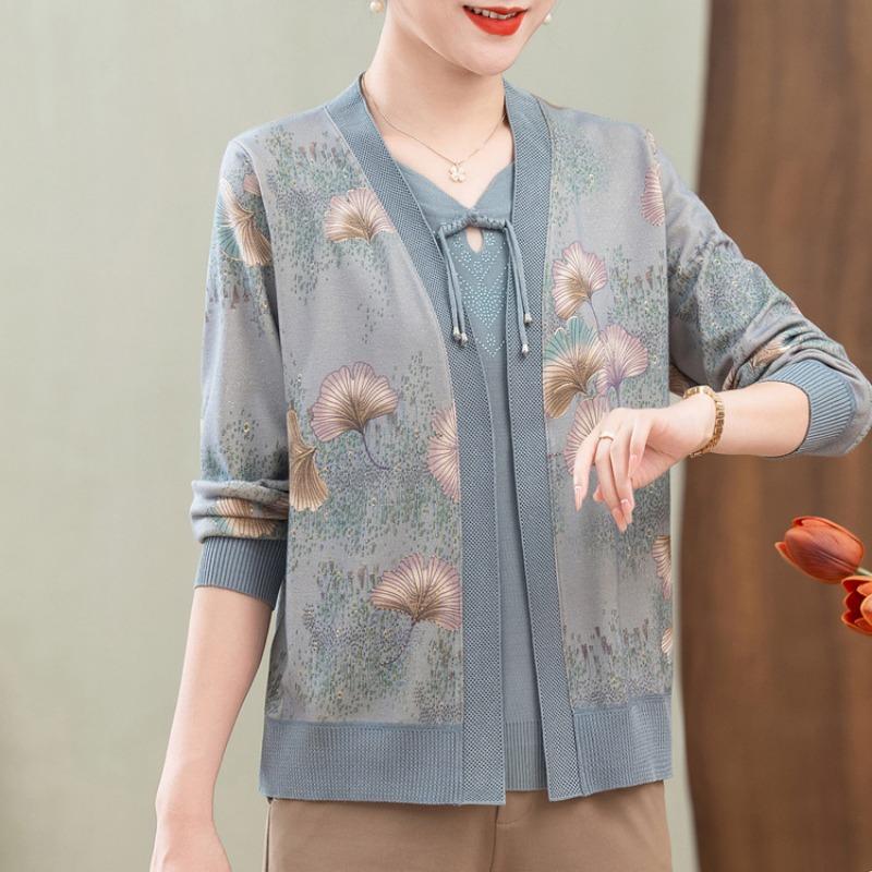Новый вязаный кардиган свитер средней возрастной группы комплект из двух предметов бабушкин осенний свитерный комплект осенний комплект для мамы с эффектом омоложения