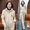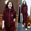 Плюс бархатный утолщенный спортивный костюм женский осенне-зимний кардиган на молнии с капюшоном свитер повседневный костюм из двух частей