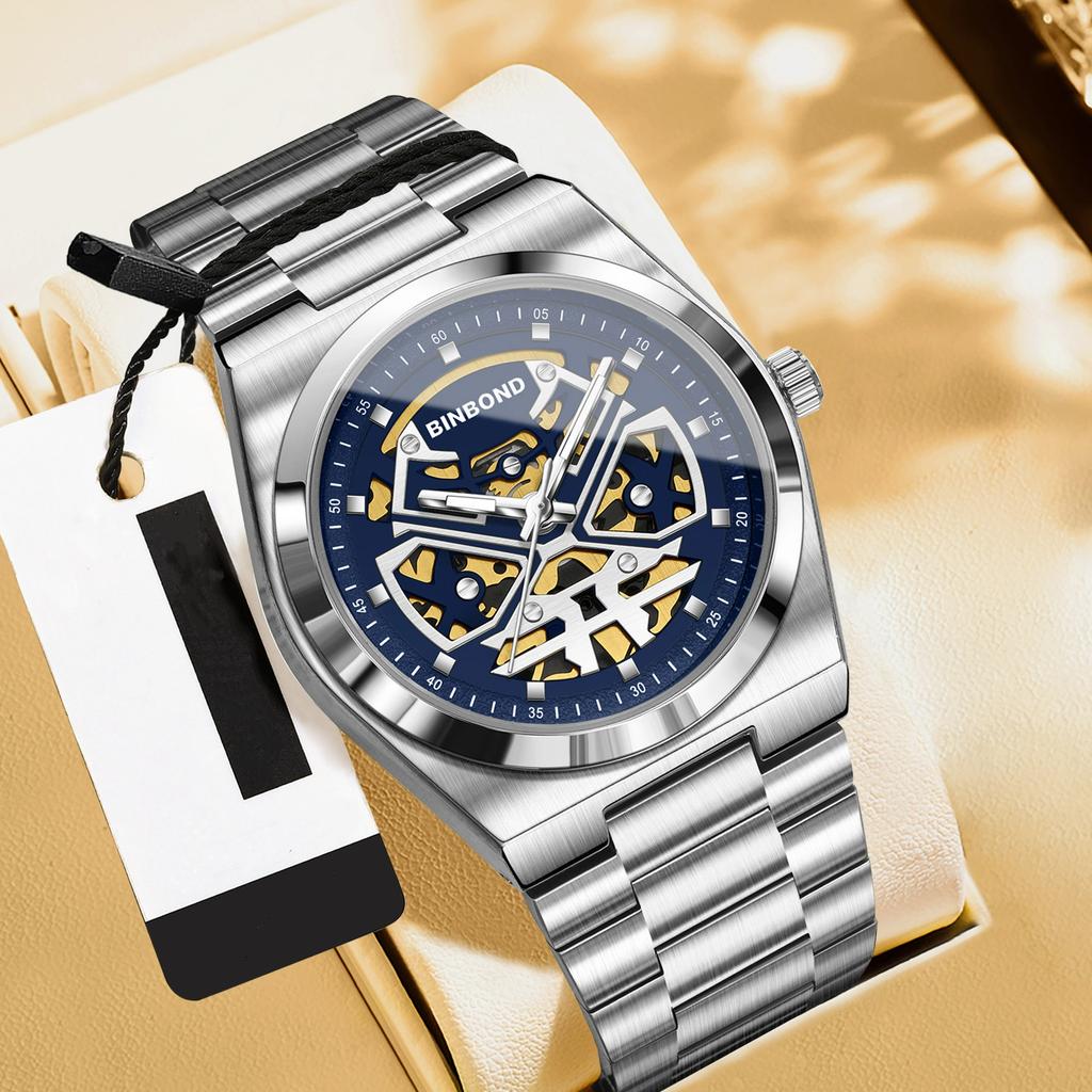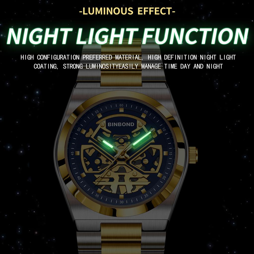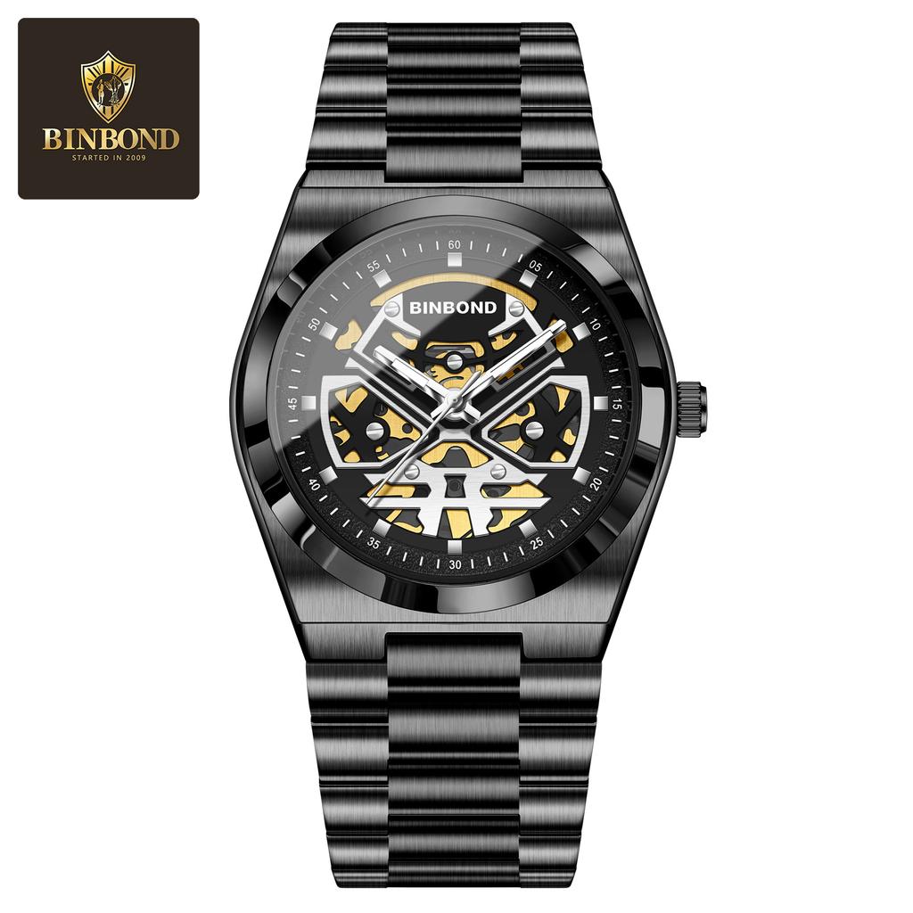 BINBOND Мужские часы Кварцевые деловые часы Мужские часы Роскошные полые часы Мужские водонепроницаемые светящиеся часы для мужчин