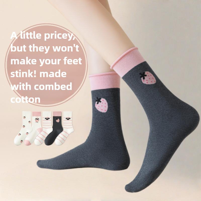 Женские весенне-осенние мультяшные милые дезодорирующие бесшовные хлопковые носки