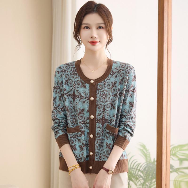 Мама осень нижний свитер кардиган вязаный свитер куртка новый круглый вырез средний и старый повседневный свободный топ