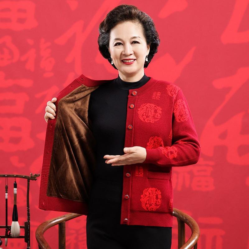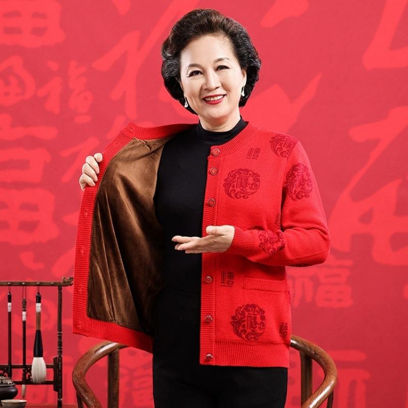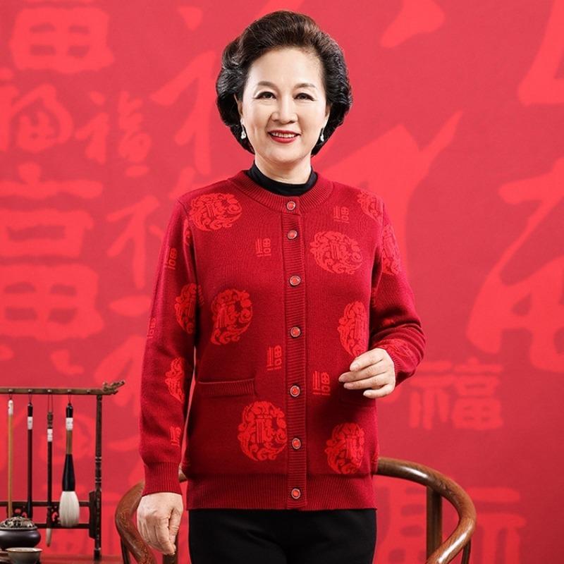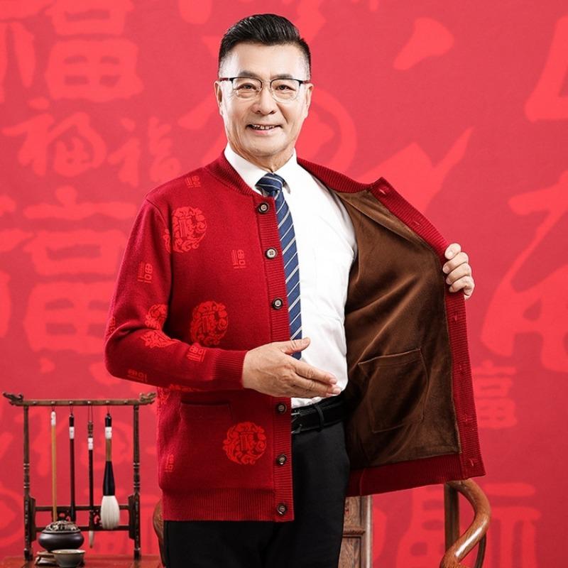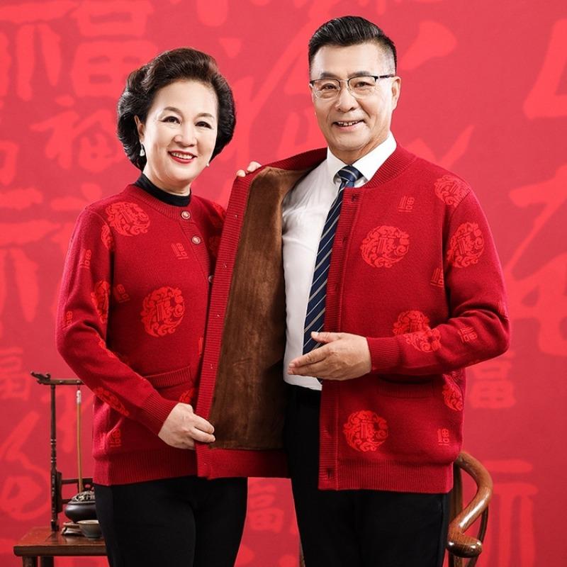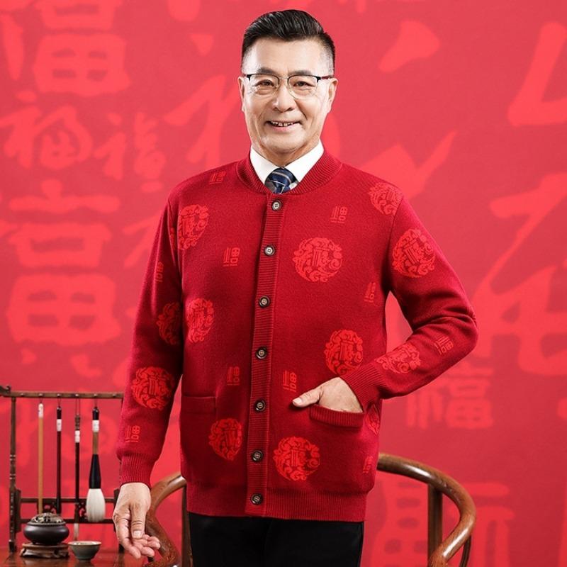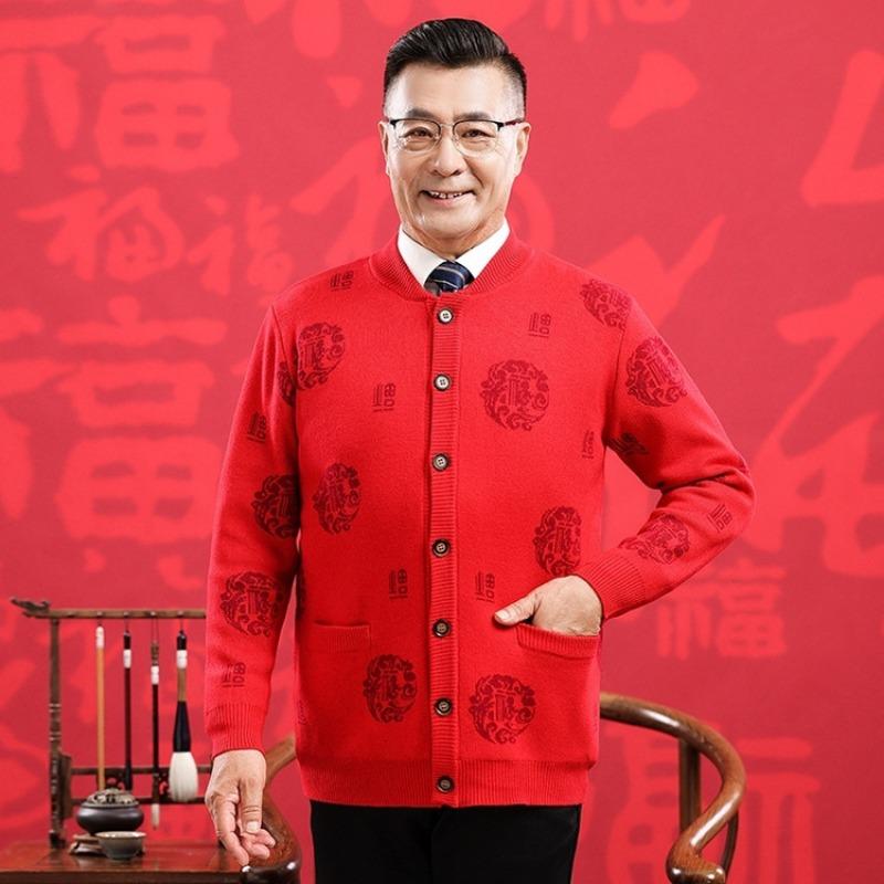 Счастливый шерстяной свитер среднего и пожилого возраста, большой красный кардиган на год рождения для пар, мужской и женский, кашемировая куртка-свитер в стиле Тан с утолщением