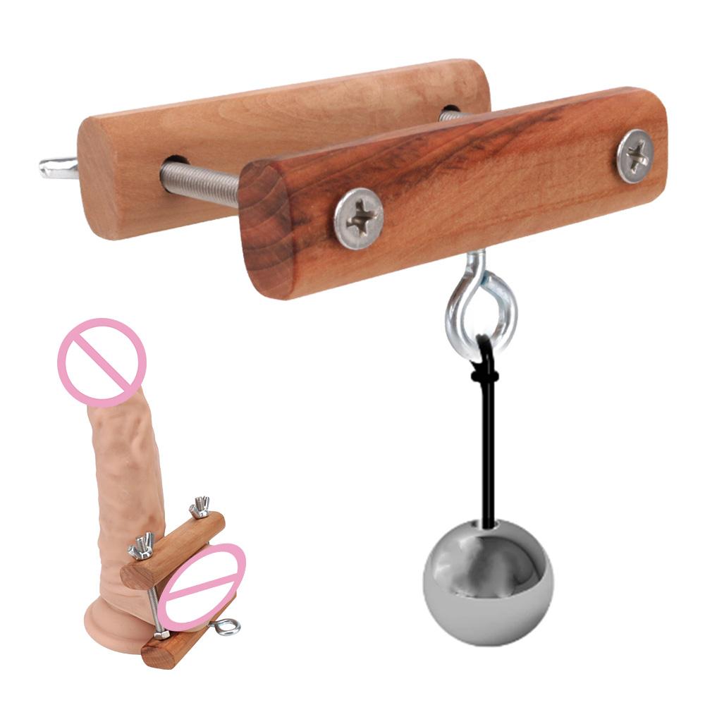 Растяжитель Металлический Шар Мужские Секс-Игрушки Подвеска для Мошонки Шар Деревянные Кольца для Пениса Зажим Тренажер для Пениса Мужской Сокрушитель Яичек