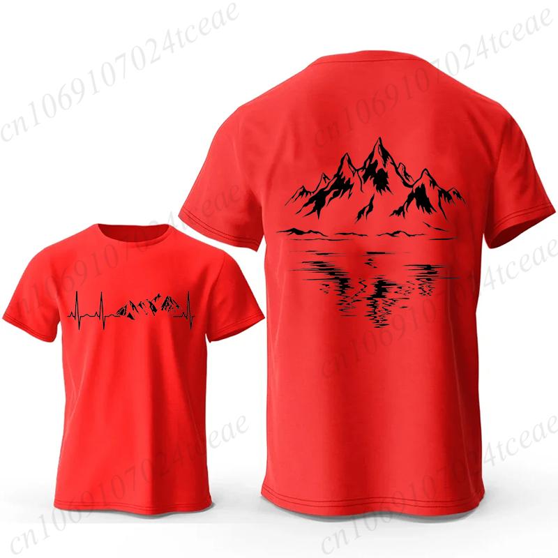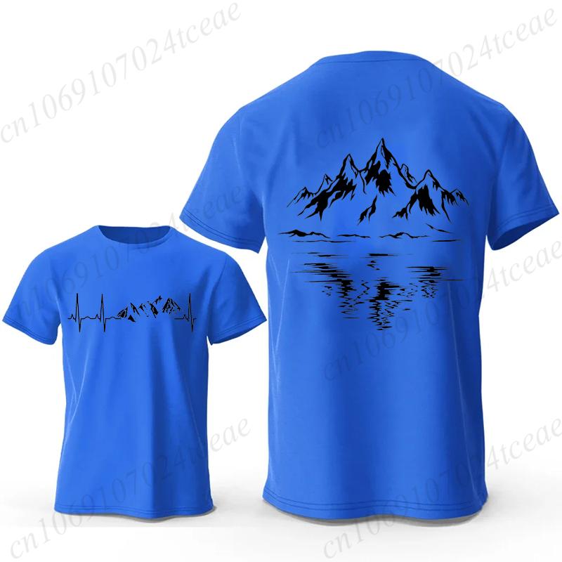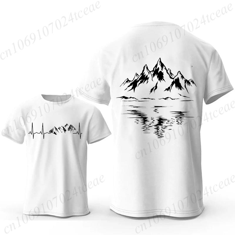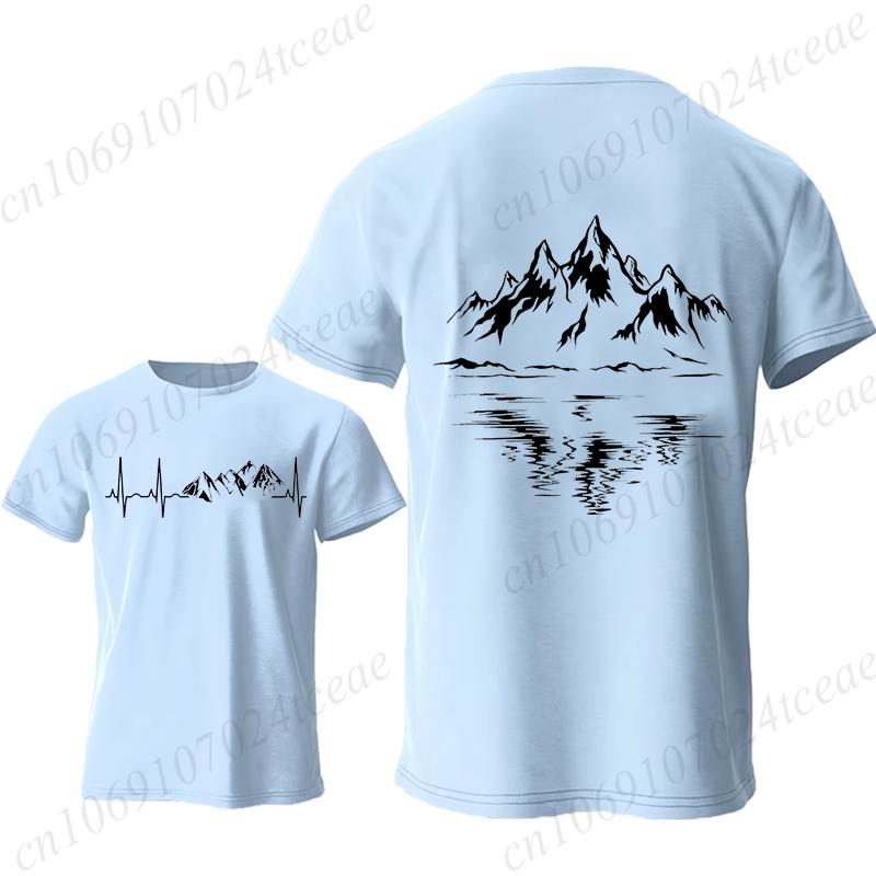 Мужская футболка с горным принтом Летняя Удобная Дышащая Футболка с коротким рукавом Топ Горный Пульс Линия Пульса Оверсайз Мужская футболка