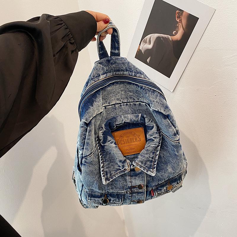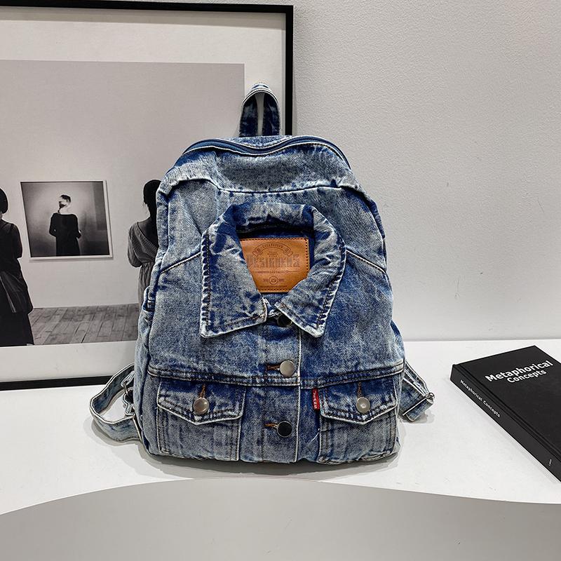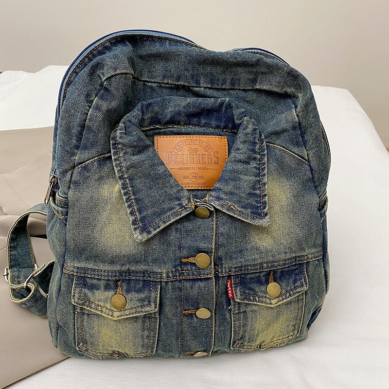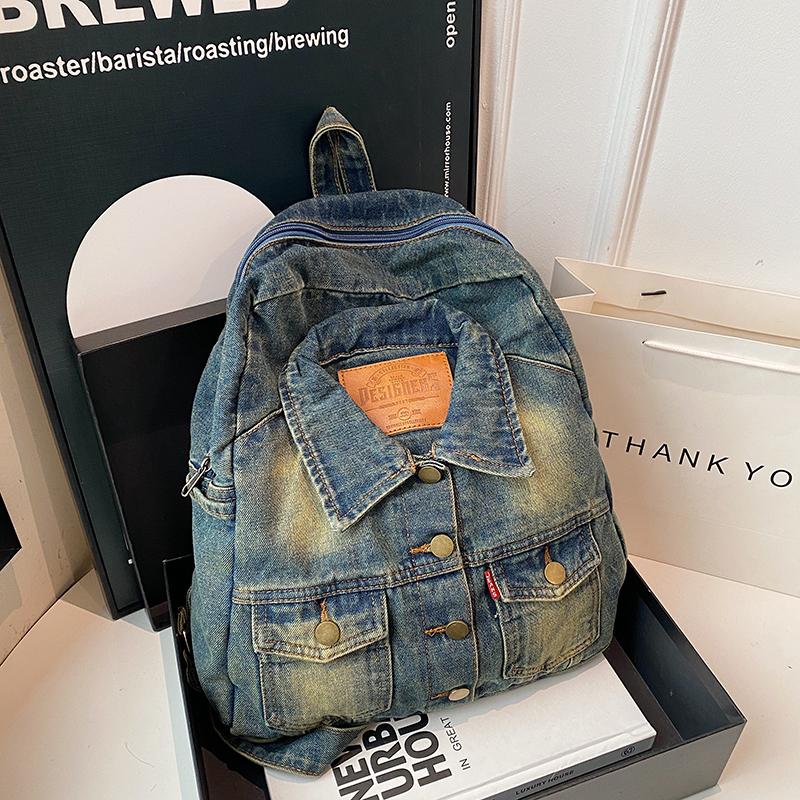 Рюкзак из выстиранного денима большой вместимости, модный в ретро-стиле, осенне-зимний рюкзак из денима большой вместимости, сумка для поездок на работу