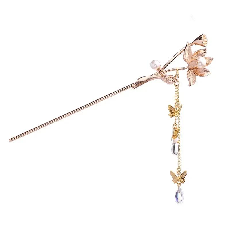Ночной лотос кисточка заколка тарелка украшение для волос ханьфу головной убор китайский стиль заколка древний стиль шаг тряска цветок жемчужная заколка
