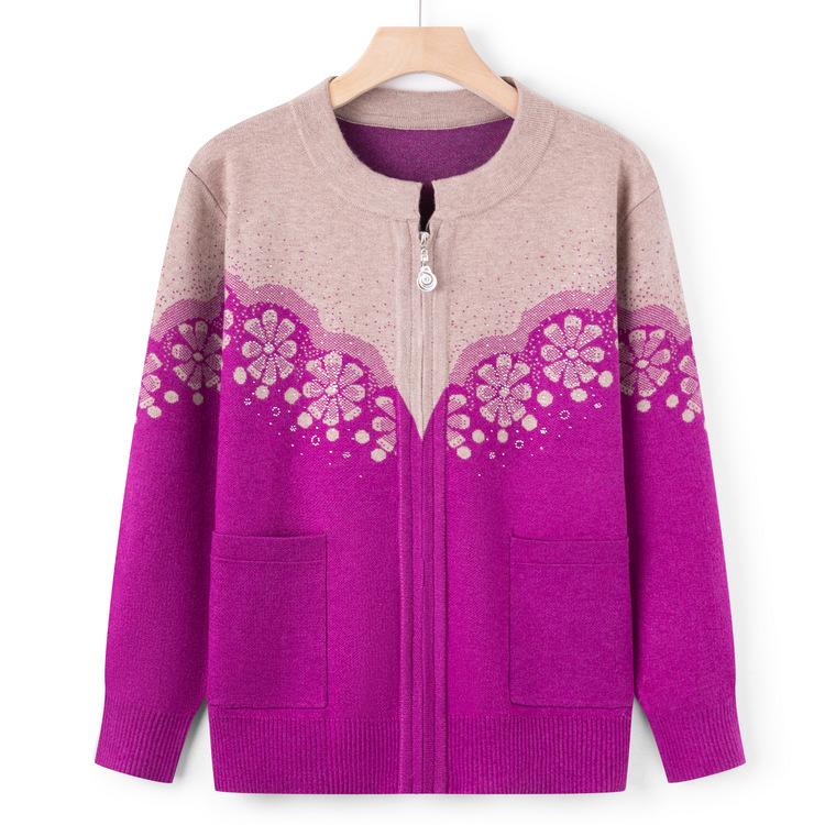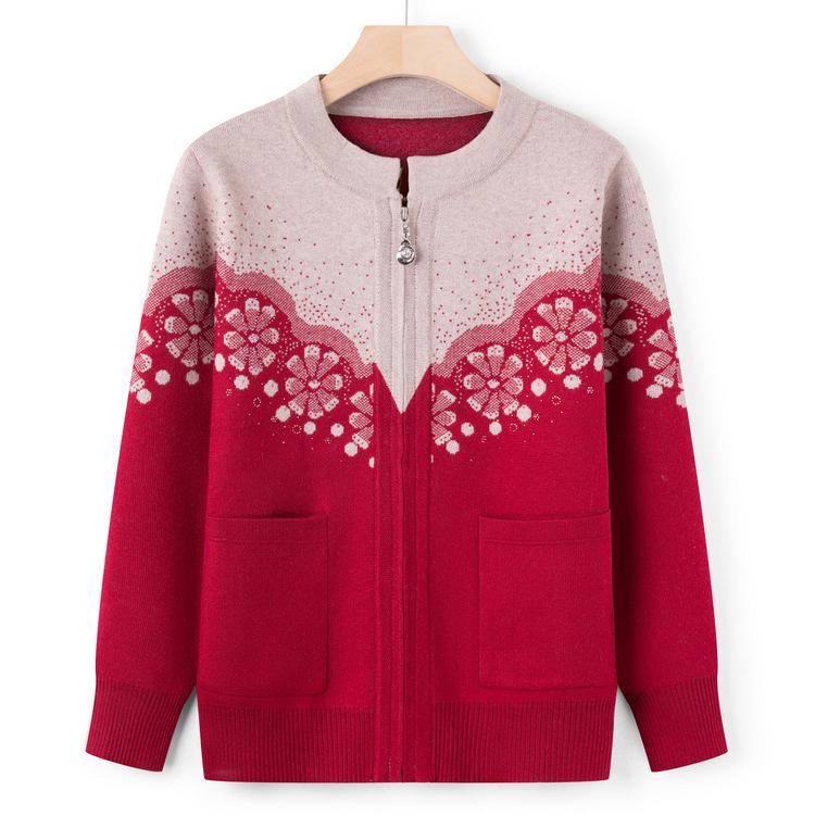 Женский свитер для осени и зимы для женщин среднего и пожилого возраста, раннеосенняя одежда для мамы, куртка на молнии с круглым вырезом, осенний кардиган для бабушки