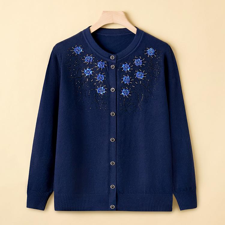 Бабушка носит топы для матери свитер с круглым вырезом куртка для среднего и пожилого возраста свитер весна и осень свободный вышитый вязаный кардиган