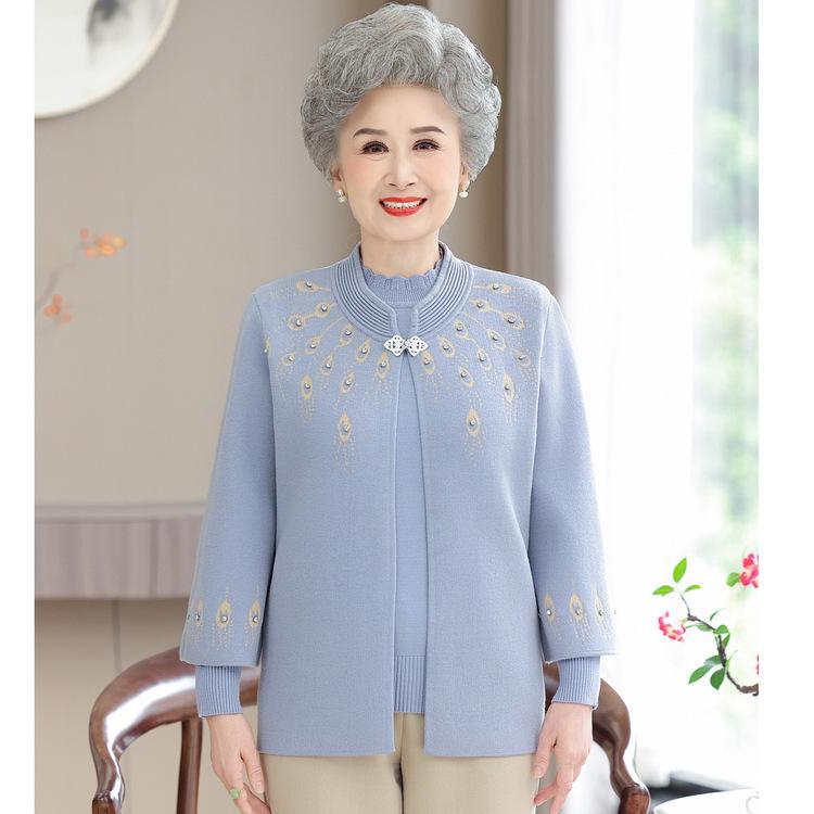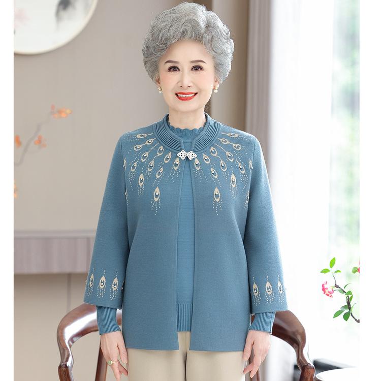 Зимняя куртка-свитер для бабушки, комплект из двух предметов для свадебного банкета мамы, костюм Тан, весенне-осенняя одежда для мамы, женский трикотажный кардиган с длинными рукавами