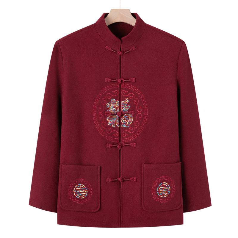 Мама и папа Плюс Бархатная Подкладка Хлопковая Одежда Для Влюбленных Осень и Зима Мужской Костюм Тан Среднего и Пожилого Возраста Пальто с Античной Вышивкой