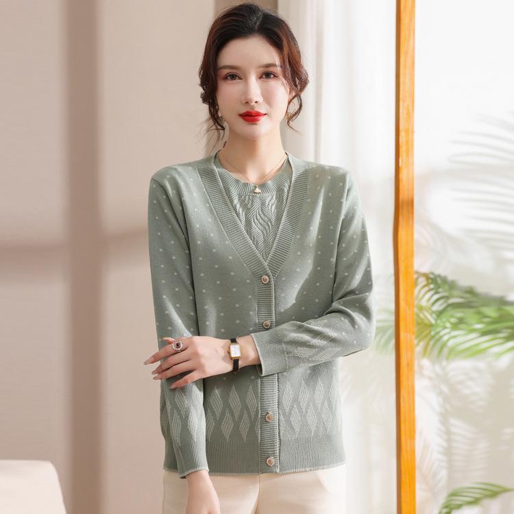 Весеннее платье Модный вязаный костюм-двойка Мама Весна и Осень Футболка с коротким рукавом Темпераментный кардиган для женщин среднего возраста