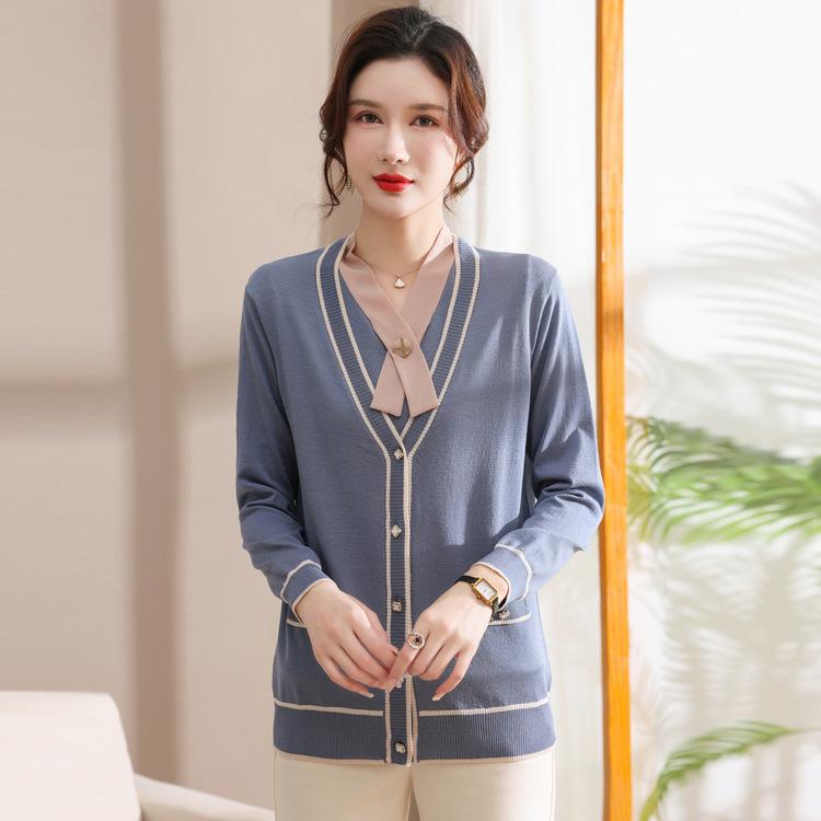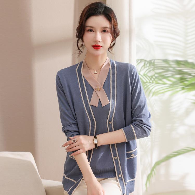 Мамин весенний комплект-двойка, модный жакет с длинным рукавом для женщин среднего и пожилого возраста, летний универсальный трикотажный топ с коротким рукавом