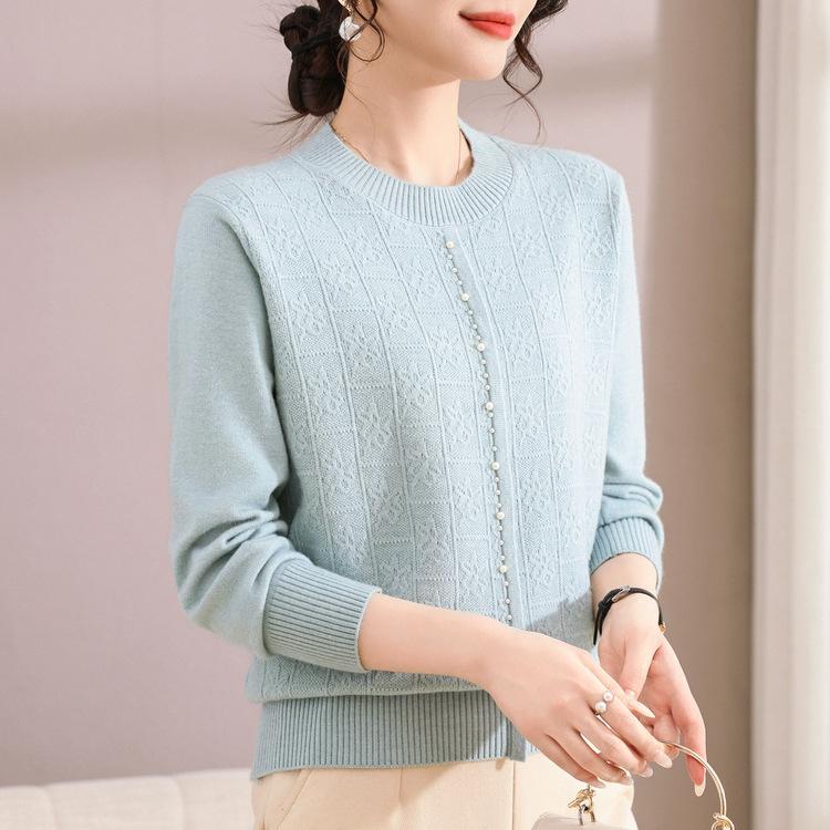 Осенний свитер с круглым вырезом и бисером для женской базовой рубашки Новая модная омолаживающая материнская кофта для женщин