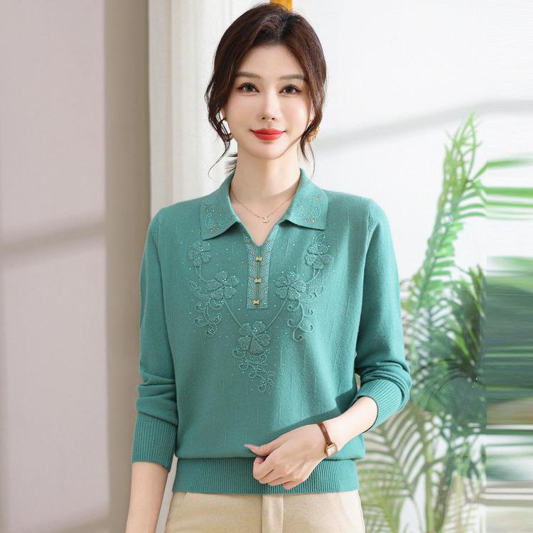 Трикотажные рубашки с длинными рукавами и омолаживающим эффектом, модные осенние платья для мам, лацканы в западном стиле и топы для базового слоя.