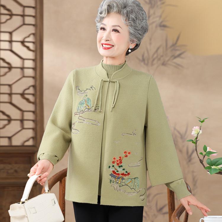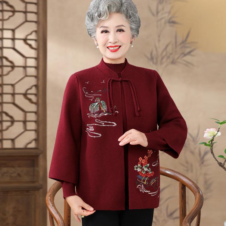 Новый стиль пожилой осенней одежды женский бабушкин вязаный костюм-двойка для мам среднего и пожилого возраста праздничный свадебный комплект одежда на день рождения
