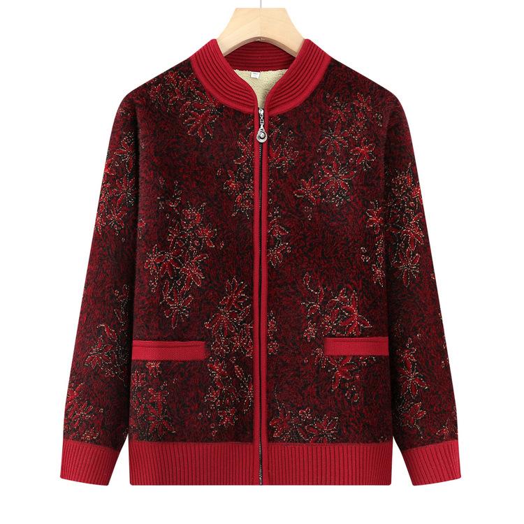 Пожилая бабушка среднего возраста носит плюшевый толстый кардиган, вязаный свитер, мама, новый теплый топ с цветами, свитер для пожилых мужчин, новый