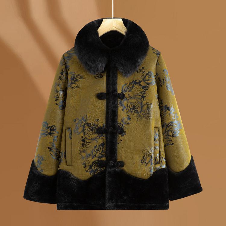 Мама Плюс Бархатная Кожаная Куртка Короткая Зимняя Утолщенная Хлопковая Куртка Женщины Среднего и Пожилого Возраста Теплые Топы Богатая Жена Женская Хлопковая Куртка