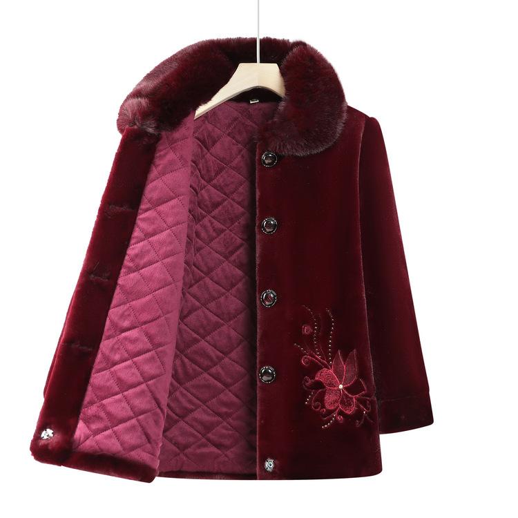 Зимнее пальто из искусственного меха норки для бабушки, одежда для мамы, теплое пальто из норки с вышивкой и плюшем, одежда для женщин среднего и пожилого возраста