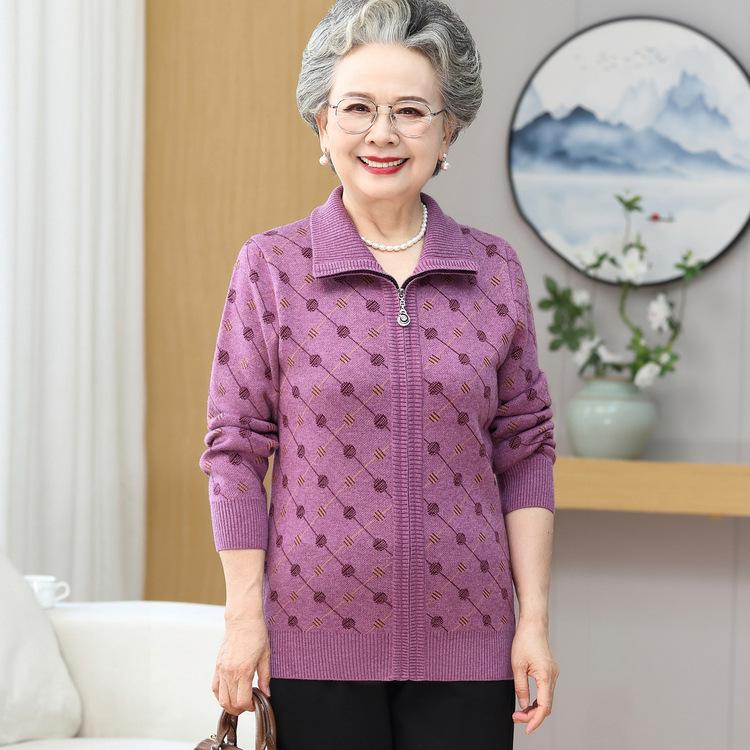 Свитер-кардиган для людей среднего и пожилого возраста в весенне-осеннем стиле с плюшевой подкладкой, бабушкин новый кардиган, топ для мамы, осенний утолщенный вязаный свитер