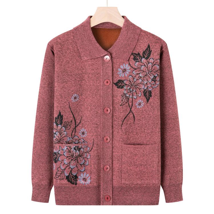 Мама Носит Свитер Кардиган Бабушка Весенне-Осеннее Пальто Пожилые Весенне-Осенний Новый Вязаный Свитер Женский Свободный Одежда для Пожилых Мужчин