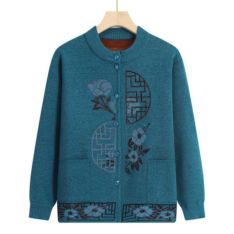 Кардиган Топ для женщин среднего и пожилого возраста на осень и зиму, бабушкин, плюс бархатный, утолщенный, теплое пальто, праздничный свитер, костюм для мамы